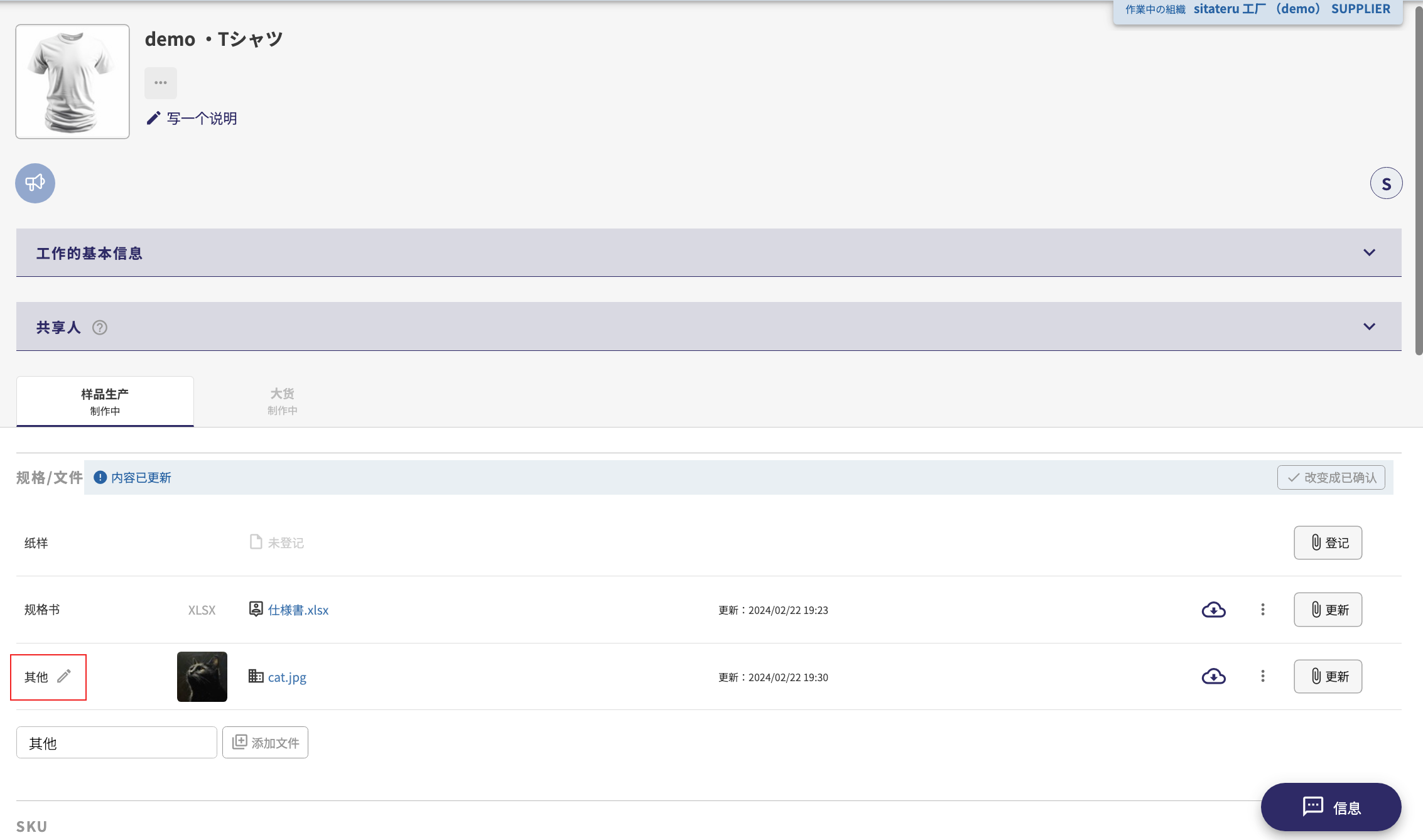 ※“规格书”和“纸样”是固定的,因此项目名称不能更改。