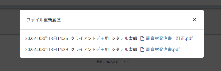 ★更新履歴を押すと、更新日時や更新した組織・担当者などを確認することができます。